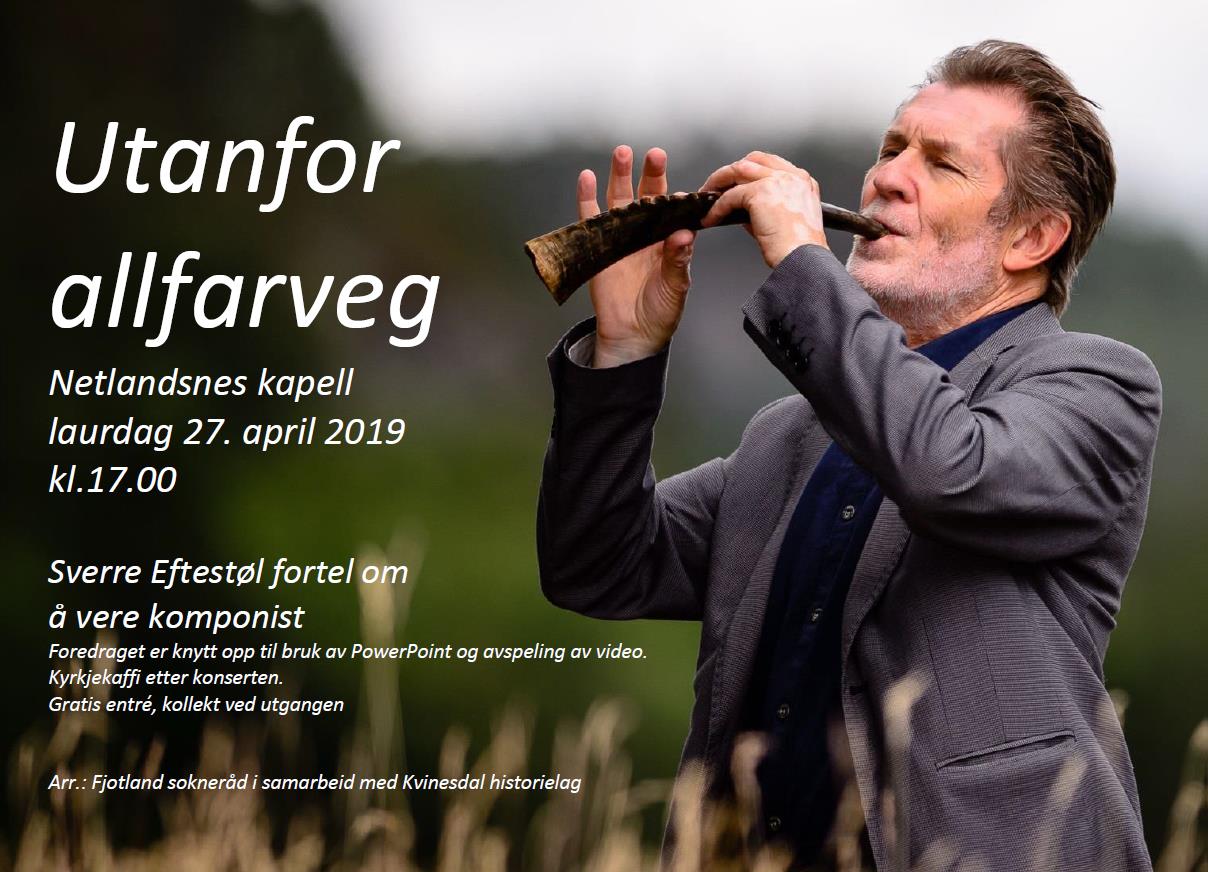 Fjotland sokneråd i samarbeid med Kvinesdal historielag invitera til konsertforedrag i Netlandsnes kapell laurdag 27.april der komponist og tidlegare organist, Sverre Eftestøl fortel om si komponistgjerning.